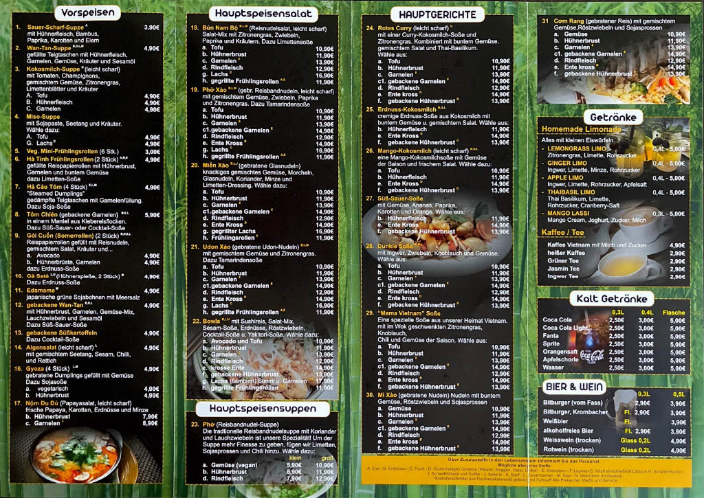 Vietnam Quan Menu